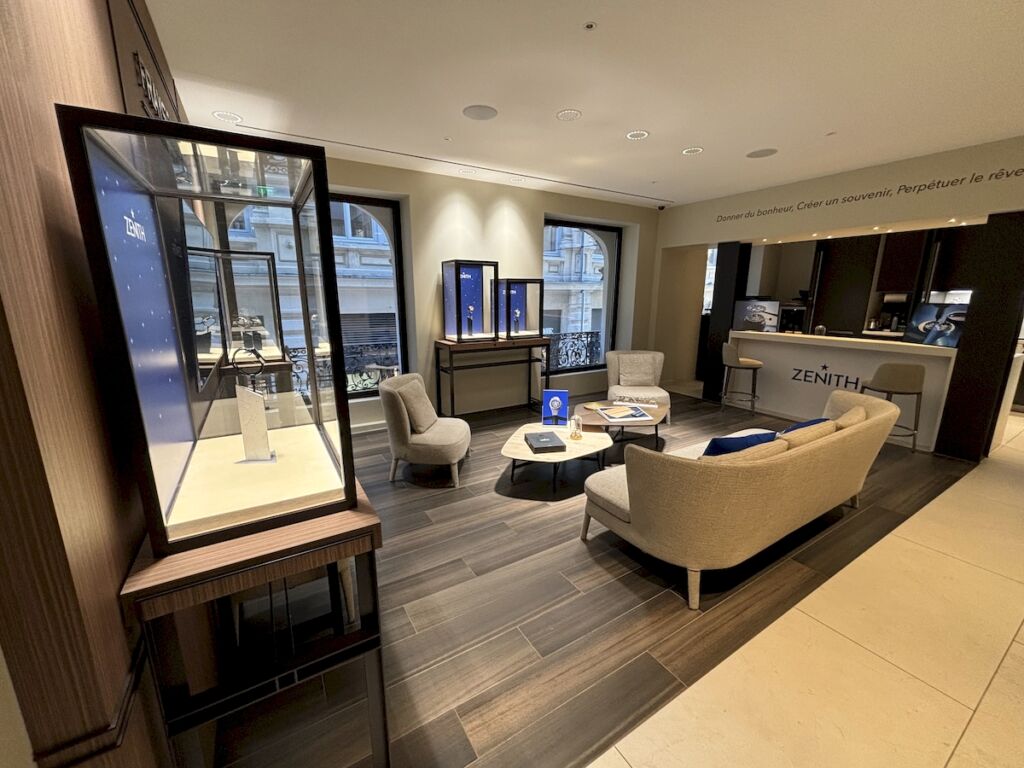 Aménagement des espaces de la boutique, vitrines d’animation et salon VIP, pour un event